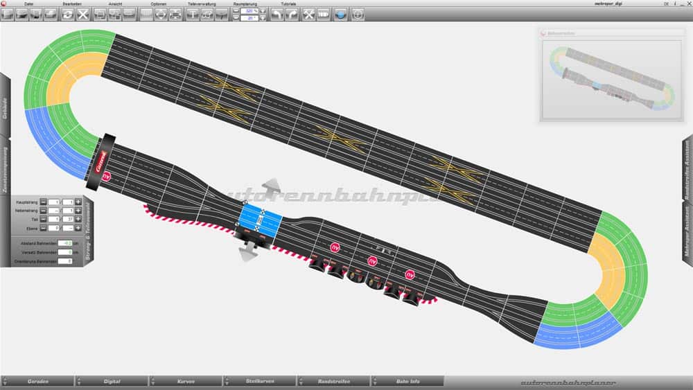 The official Carrera Track Layout Planner was based off of this slot track designer software. You will find the user interfaces practically identical. The Carrera planner has some pre-configured tracks available for you to load up to modify to your liking. They are based off different sets that were available in the past.